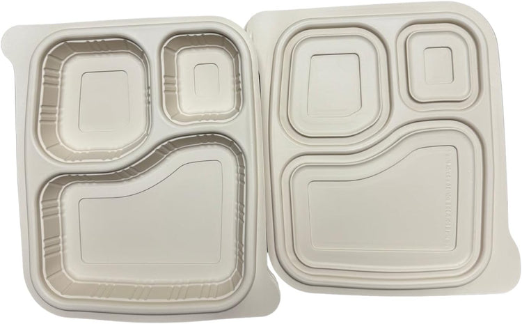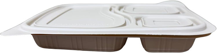 Harshu 3-Compartment Cornstarch Plates with Lids are a practical choice for serving and transporting meals in organized portions. Each plate is made with a molded cornstarch base and includes a fitted lid to support takeout, catering, and meal delivery operations. Designed with three compartments, these trays help separate main dishes from sides and snacks, preserving presentation and taste. The secure-fit lids assist with transport and storage, making these trays ideal for prep kitchens, school lunches, and event catering. Each pack includes 10 trays with matching lids, offering convenience for both food professionals and home meal planners.